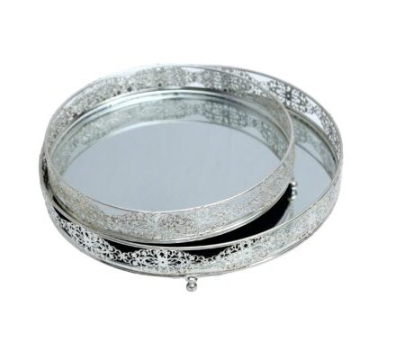 Metal Mirror Tray | Laser Cut Tray | Round Vanity Tray for Dressing Table | Silver| (Set of 2)
